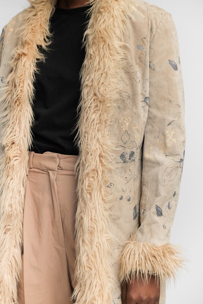 70s Genuine Leather Shaggy Floral Coat