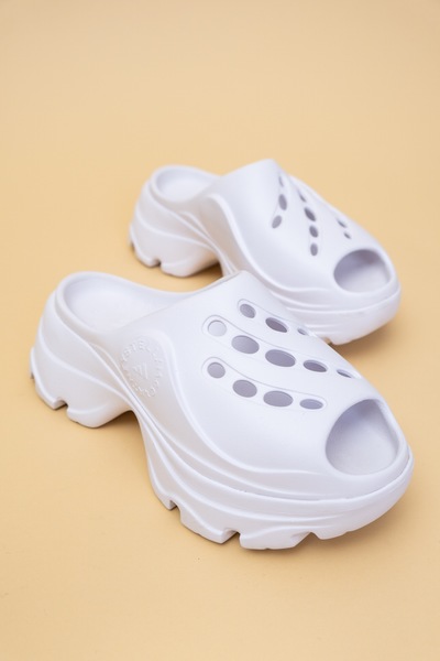 Pre-owned Adidas by Stella McCartney Clog. White upper rubber and sole. Platform silhouette. Adidas by Stella McCartney logo at sides. Slip on style.
