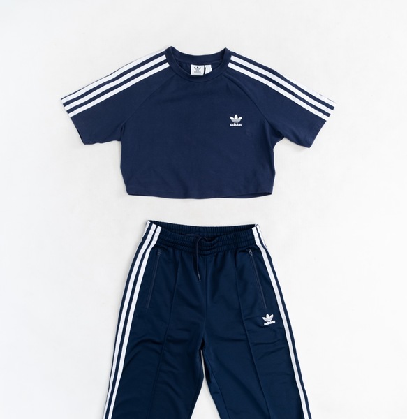 Adidas Embroidered Track Pant Set. Cropped tshirt top and high rise track pants. Flower and print embroidery