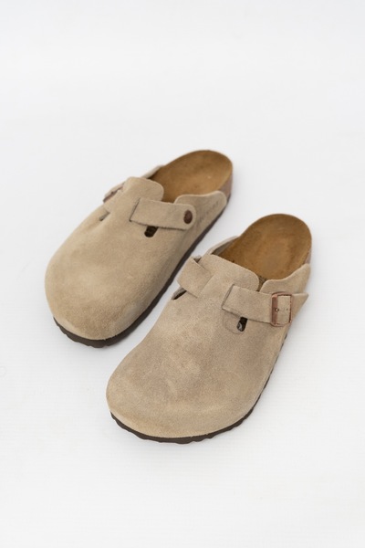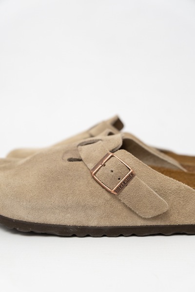 Pre-owned Birkinstock Boston Suede Clogs Taupe. Made in Germany. With a box