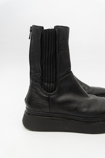 Pre-Owned Chunky Lug Sole Genuine Leather Boots. Slim at the ankle. Zips at the back.