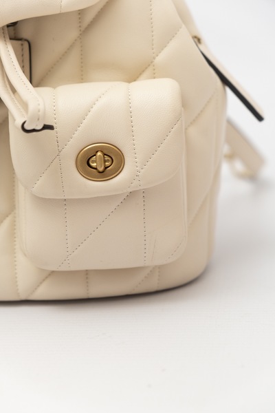 Pre-Owned COACH Tabby Backpack With Quilting in Cream. Tabby quilted soft leather. Gold tone signature Coach hardware and gold tone chain strap. Can be worn as a backpack or cross body bag/shoulder bag. Super versatile & stylish! With original Coach dustbag, box and bag. Personalised Coach leather tag (can be removed and replaced by your own!). Retail R14 995