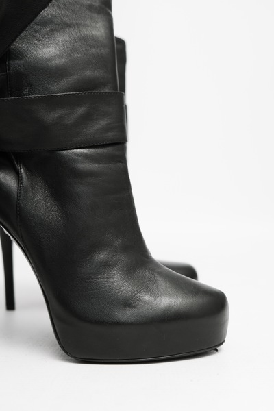 Pre-owned Dolce&Gabbana leather heeled boots. Tie detail. Made in Italy