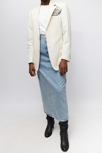 Vintage Dolce&Gabbana line/cotton blend cream blazer. D&G large graphic not he front and back.