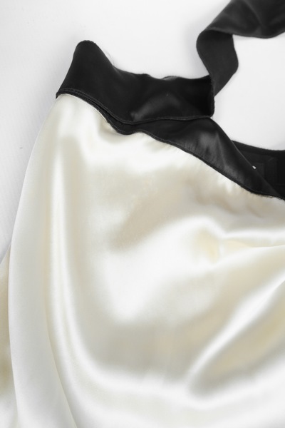 - 80% acetate, 20% silk, 100% silk lining and trims