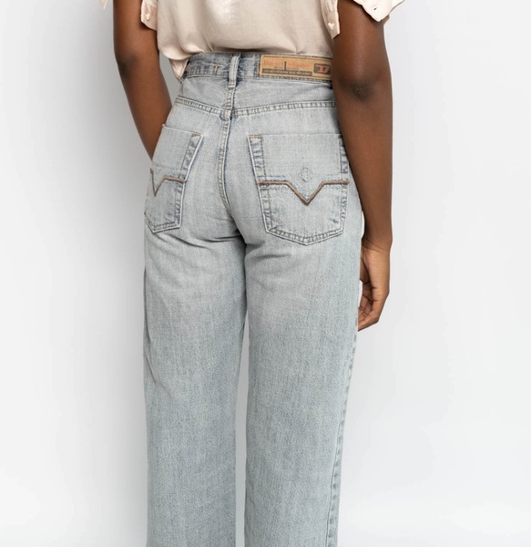 Vintage Diesel high rise denim jeans. Light grey color. Iconic Diesel logo not the back.