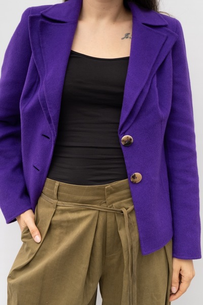 Vintage ESCADA exquisite Angora Blend Blazer in deep purple! Embossed Escada tortoise shell buttons. Eye catching wool angora fabric. Very soft! Made in Italy
