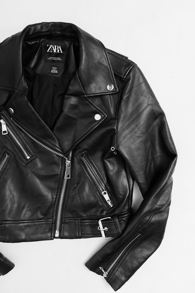 Pre-owned Zara faux leather biker styles jacket. Silver tone hardware, cropped fit.
