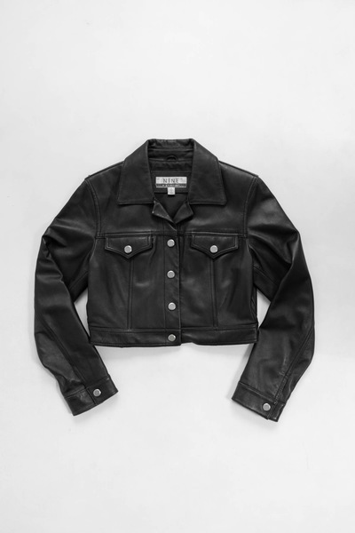 Genuine leather cropped boxy jacket.