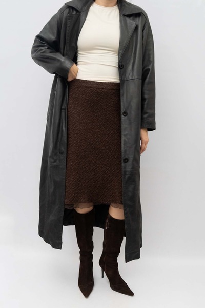 Vintage Genuine Leather Trench Coat Black With A Belt. Amazing quality soft leather. Structured silhouette. Long length