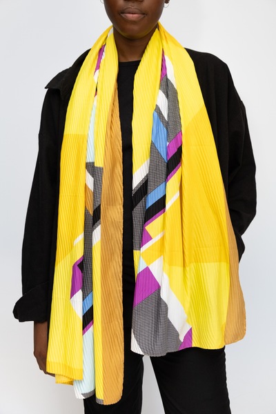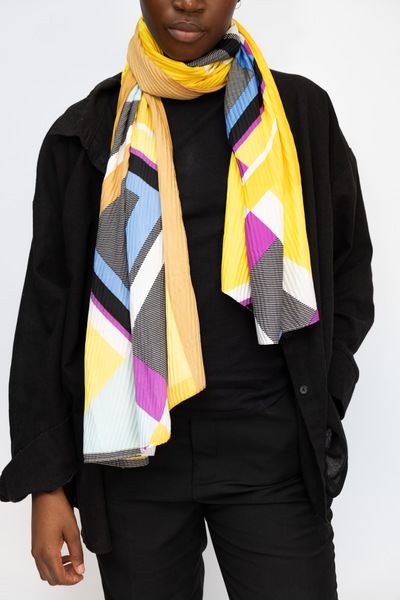 Vintage Geometric Print Pleated Shawl Scarf. No tags