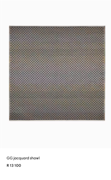 Pre-Owned GUCCI Monogram Wool Silk Shawl Scarf. Large shawl size. Luxurious Monogram GG wool silk blend. With all Gucci&composition tags intact. Made in Italy. Supplied with our own non branded MOY dustbag. Retail currently on GUCCI.COM R13 100 ( You save R7600!)