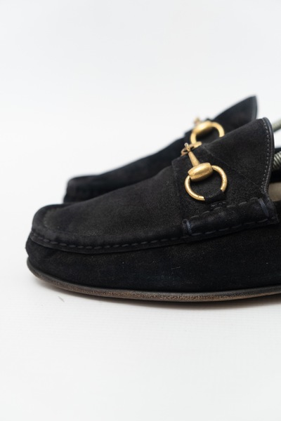 Rare find! Vintage GUCCI Horsebit Suede Loafers. A classic timeless designer shoe! Gold tone Gucci horse bit detail. Fabric inner. Made in Italy. Supplied with MOY dustbag