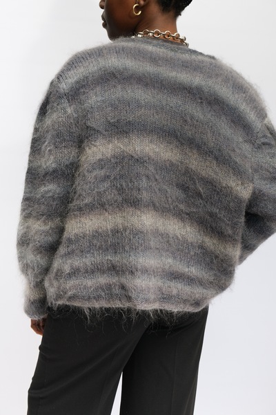 Vintage Jacque Feraud Mohair Cardigan. Striped dark green mohair. Style has no buttons