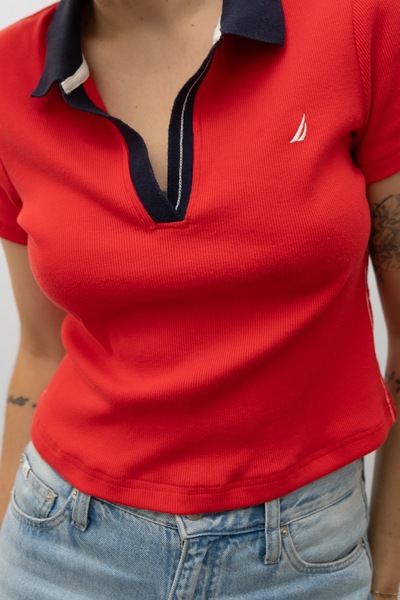 Vintage Nautica Golfer Top. Soft stretchy fabric, slightly cropped. Embroidered Nautica logo. Golfer style top.