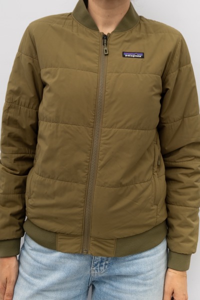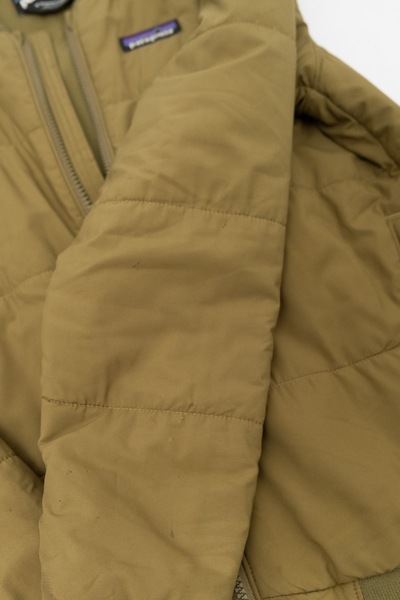 Pre-owned PATAGONIA Zemer Bomber Jacket in khaki green. Patagonia logo. Bomber style