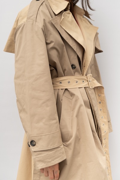 Pre-owned ROKH x H&M Cotton Blend Double Trench Coat. Absolutely fabulous thick quality trench coat with detachble top. Two toned cotton blend fabric. With a belt. Oversized fit. Embossed buttons. Retail R6000