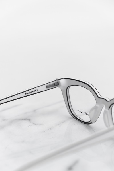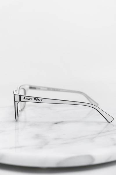 Ronit Furst Hand Painted Eyewear. White and black matt fam. Ronit First logo. Supplied with a case and box. Estimate retail R4100