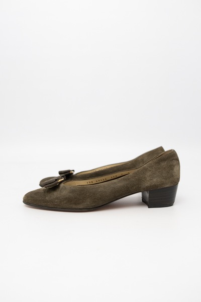 Salvator Ferragamo Vintage Suede Pumps Khaki