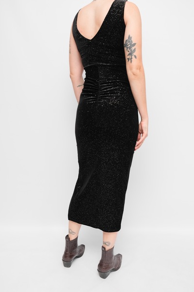 Velvet Bodycon Dress from Lipsy. Velvet glitter fabric, diamanté neck line, front slit. Stretchy fabric