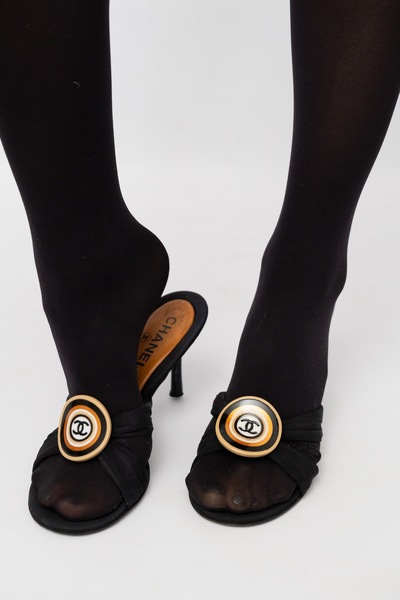 Rare! Vintage Chanel Black Logo CC Sandals. Acetate CC logo detail. Iconic , rare and one of a kind! We never find the same Chanel pieces twice! The same style sold pre-loved at R7400 + tax. Made in Italy. Supplied with MOY dustbag. This item is available with an Outsourced Authenticity Certificate at extra R300. Get in touch to add it at checkout.