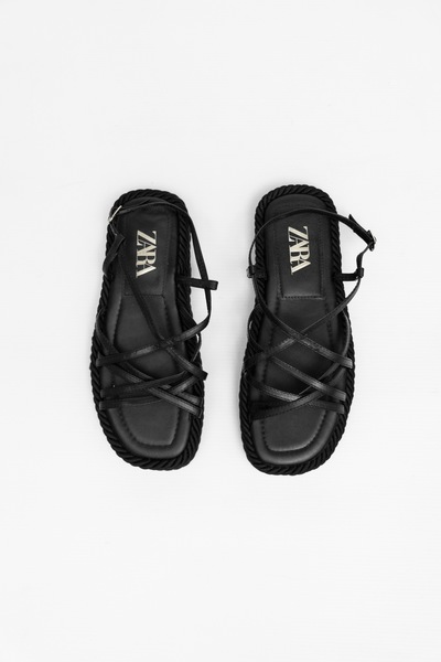 Zara Leather Rope Sandals. Chunky sole. Leather ropes. Unfortunately, a mismatched pair in size, priced accordingly.